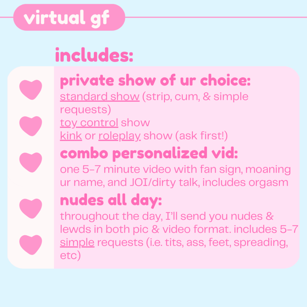 for any other requests please ask first! roleplay, anal, and kink shows may cost extra but not always!